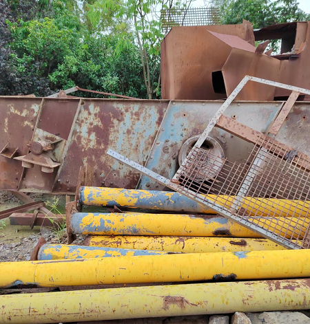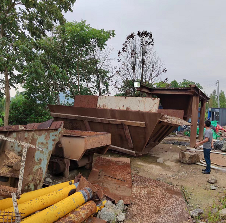 目前沙场一百多吨机械设备当废钢铁处理,后期还有600多吨要处理