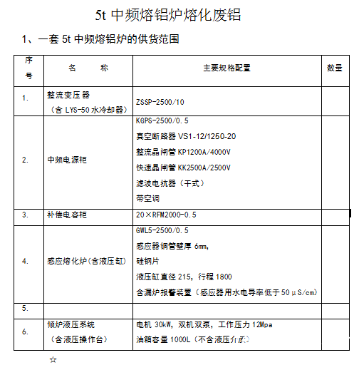 一套5t中频熔铝炉设备